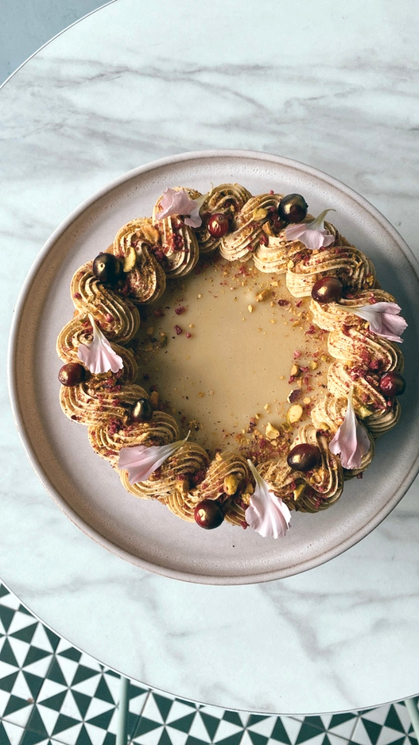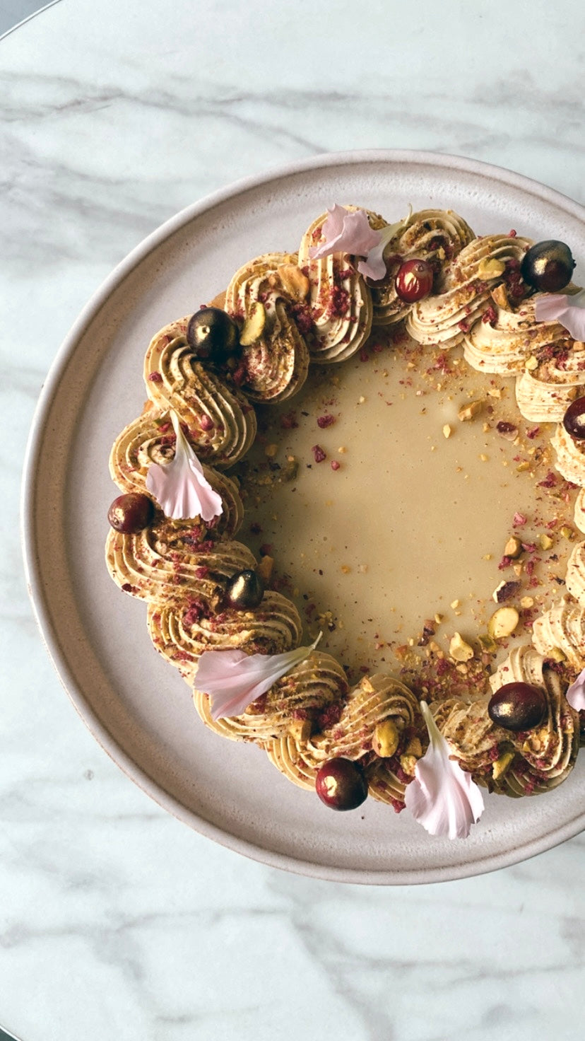 Super delikatny i kremowy ‘sernik’ z orzechów nerkowca na kruchym owsiano-migdałowym spodzie. Dostępny w dwóch smakach. Z ganaszem z białej czekolady i delikatnym musem pistacjowym lub z musem czekoladowym i karmelizowanymi orzechami laskowymi.